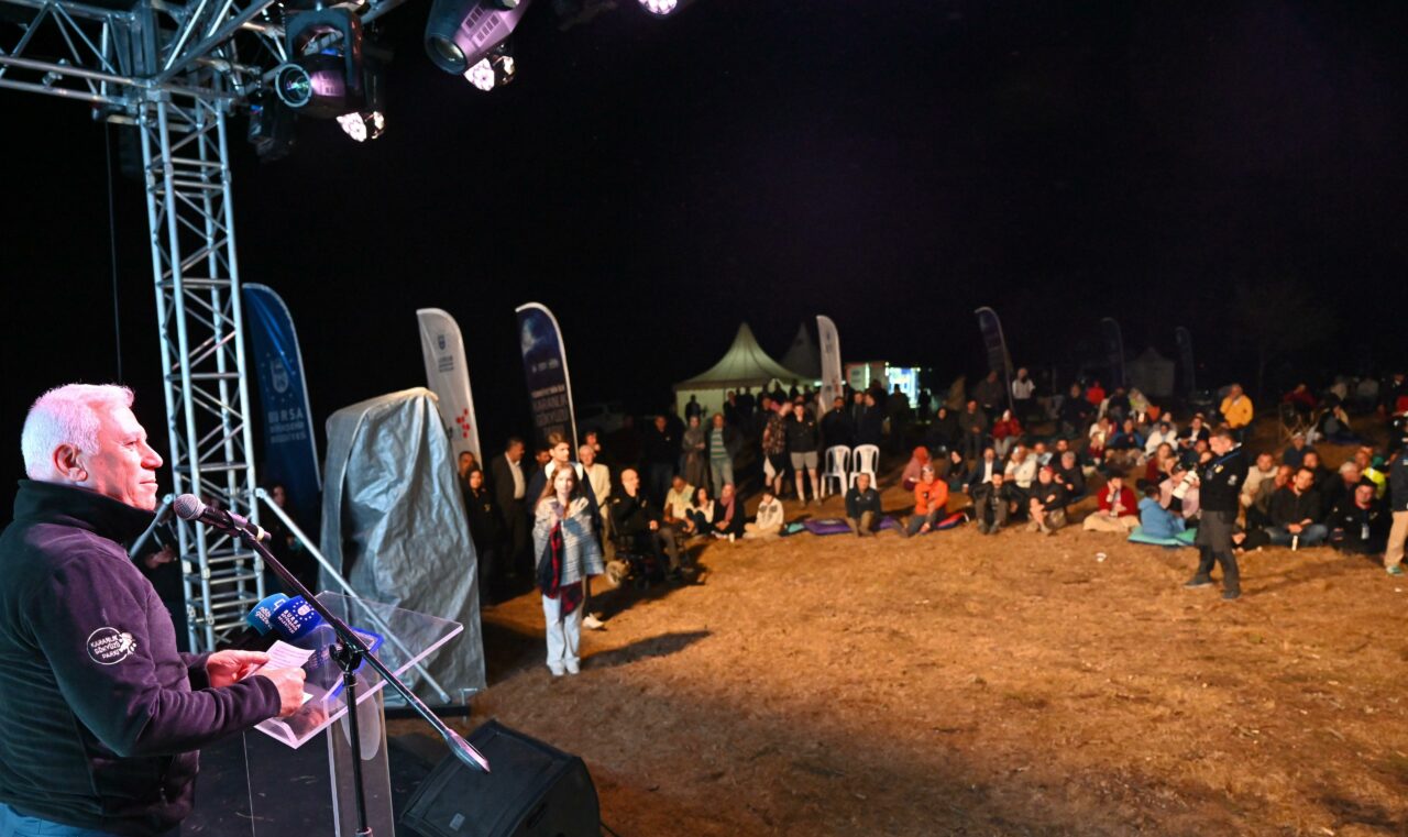 Türkiye’nin ilk ‘Karanlık Gökyüzü Parkı’nın açılış törenine, Bursa Büyükşehir Belediye Başkanı Mustafa Bozbey’in yanı sıra CHP İl Başkanı Nihat Yeşiltaş, CHP İlçe Başkanı Zemci Şahin, İnegöl Belediye Başkanı Alper Taban, muhtarlar, sivil toplum kuruluşlarının temsilcileri, akademisyenler ve çok sayıda doğasever katıldı. Türkiye’nin ilk ‘Karanlık Gökyüzü Parkı’nı Bursa’ya kazandırmaktan büyük mutluluk duyduklarını söyleyen Başkan Mustafa Bozbey, hayatı hızlandıran koşuşturmacalar, teknolojideki gelişmeler, yeni aletler, cihazlar ve alışkanlıklar sebebiyle varlığı bilinen şeyleri dahi göremez hale geldiklerini belirtti. Cep telefonlarına bakmaktan dostları, başkalarının paylaştığı manzaraları izlemekten kendi çevremizi göremediğimizi dile getiren Başkan Bozbey, “En çok da yıldızları göremez olduk. Samanyolu’nun varlığını her çocuk bilir. Ama kaç çocuk ve yetişkin Samanyolu’nu gördü acaba? Adlarını ezbere bildiğimiz yıldızları en son ne zaman izlediğimizi hatırlamayız. Ya da izledik mi? Bunun için parkımızı, Türkiye’nin ilk karanlık parkı olarak hizmete açıyoruz. Açılışın yanında teleskop yapımından astro fotoğrafçılığa, müzik dinletisinden farklı atölye çalışmalarına kadar çeşitli etkinlikler ile sadece gökyüzü değil, aklımızın ve ruhumuzun ufuklarını da tarayacağız. Meteor yağmurlarının en görkemlisi olan perseid göktaşı yağmuruna tanıklık etme fırsatı buluyoruz” dedi.