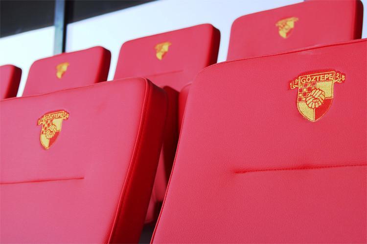 Öte yandan, stadyumun maraton tribünündeki koltuklarda kırmızı font üzerine sarı yazıyla “19 Göztepe 25” şeklinde bir tasarım bulunuyor. Bu tasarımı, Göztepe Spor Kulübü’nün sosyal medyadan yaptığı anketle Göztepeli taraftarlar belirledi.