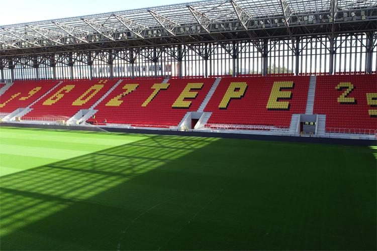 Sahadaki zemin için hibrit çim tercih edilirken, sahanın bakımı için ise suni güneş cihazları kullanılıyor.
