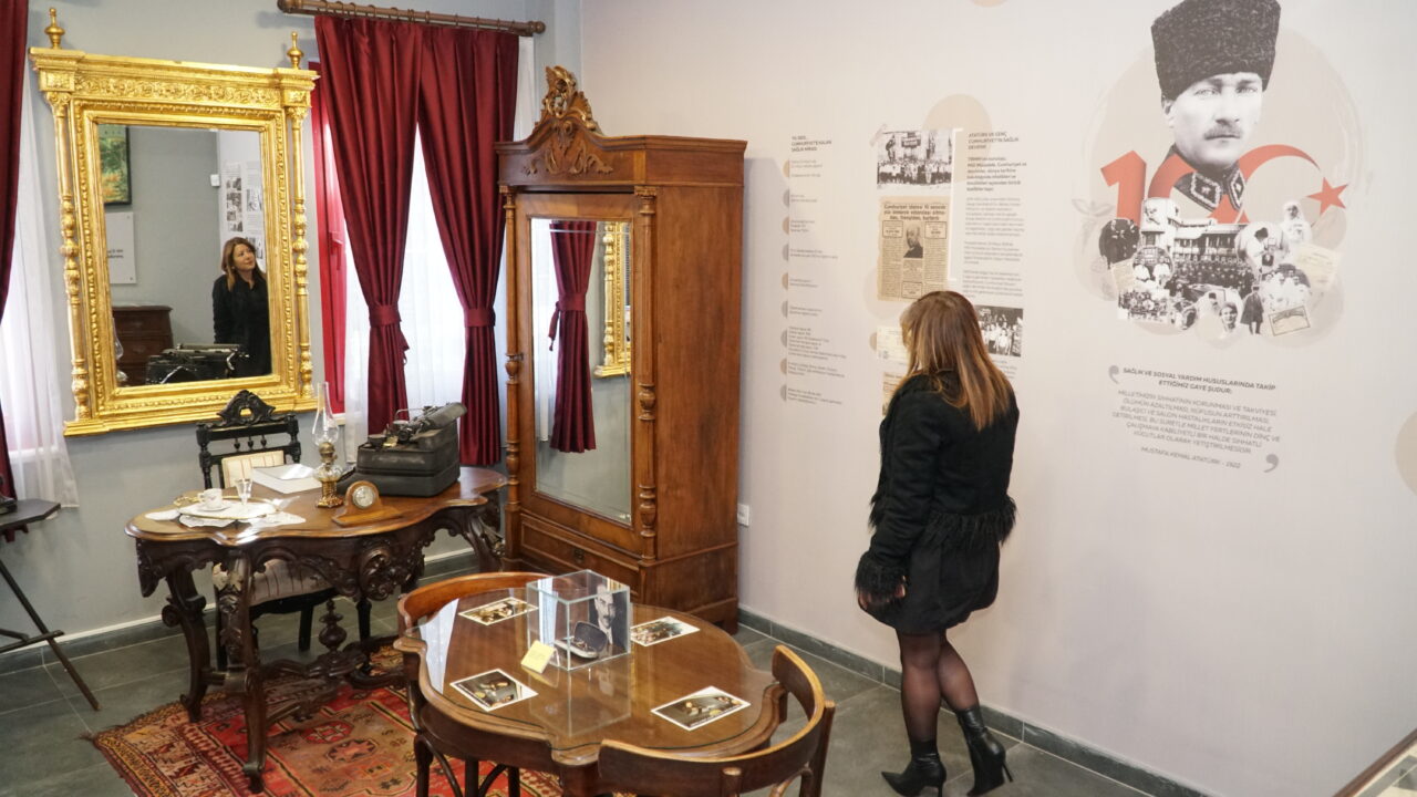 Müzenin en özel bölümü olan Atatürk Odası’nda Cumhuriyetin ilk yıllarından başlayan sağlık seferberliğinin olağanüstü hikayesi ziyaretçileri büyülüyor. Atatürk Odası’na ziyaretçilerden büyük ilgi gördüğünü vurgulayan Dr. Ceyhun İrgil, “Çekirge semtindeki Splendid Otel, 11 Eylül 1922’de Bursa’nın kurtuluşu sonrasında yaralı askerler ve savaş yorgunu gazilerin tedavileri ve dinlenmeleri için devlet tarafından satın alınarak askeri hastaneye dönüştürüldü. 1922-1950 yılları arasında Asker Hastanesi olarak kullanılan otel, 1960 yılında tamamen yıkıldı ve yerine günümüzde de kullanılan ve fizik tedavi hastanesine dönüştürülen bina yapıldı. Haziran 1926’da beşinci Bursa gezisi sırasında Hotel Splendid’de bulunan hastaneyi ziyaret eden Atatürk, bu ziyaret sırasında bir hastalık nedeniyle Bursa Asker Hastanesi’nde tedavi edildi. Atatürk’ün bu hastanede kullandığı orijinal mobilya ve eşyaları Atatürk Odası’nda sergilenerek ziyaretçilere duygu dolu anlar yaşatıyor” ifadelerini kullandı.