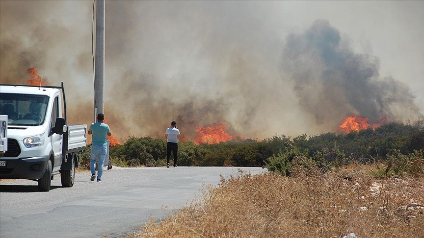 Aydın’ın Didim ilçesi Efeler Mahallesi Tekağaç mevkisindeki yerleşim yeri yakınında bulunan makilik alanda da yangın çıktı.