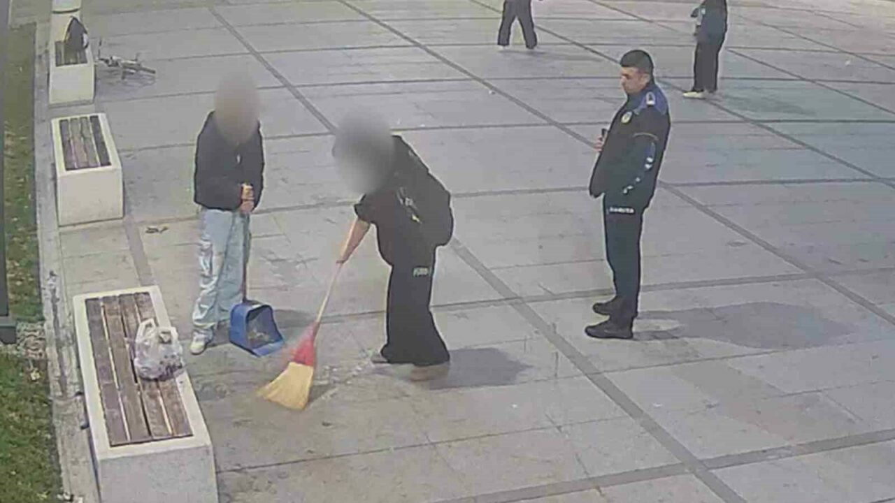 İzleme ve Değerlendirme Merkezindeki ekipler tarafından merkez park heykel önünde bir grup gencin çekirdek ve yanında farklı yiyecekler yedikleri, çekirdek kabuklarını yere atıp, diğer yiyeceklerin çöplerini de ortada bıraktıkları tespit edildi. Alanda oluşan ciddi seviyedeki kirliliğe zabıta ekipleri anında müdahale etti. Zabıta personeli çevre kirliliğine sebebiyet veren gençleri tespit etti. Oluşan çevre kirliliğini gidermek için gençlere süpürge ve kürek verilerek kirlettikleri yer temizletildi. Yere atılan çöpler toplatıldı. Ardından çevre kirliliğine sebebiyet veren kişilere kabahatler kanunu kapsamında idari para cezası da uygulandı. Ayrıca yapılan davranışın doğru olmadığı hatırlatılarak, çevre temizliği konusunda daha hassas olmaları uyarısı yapıldı.
