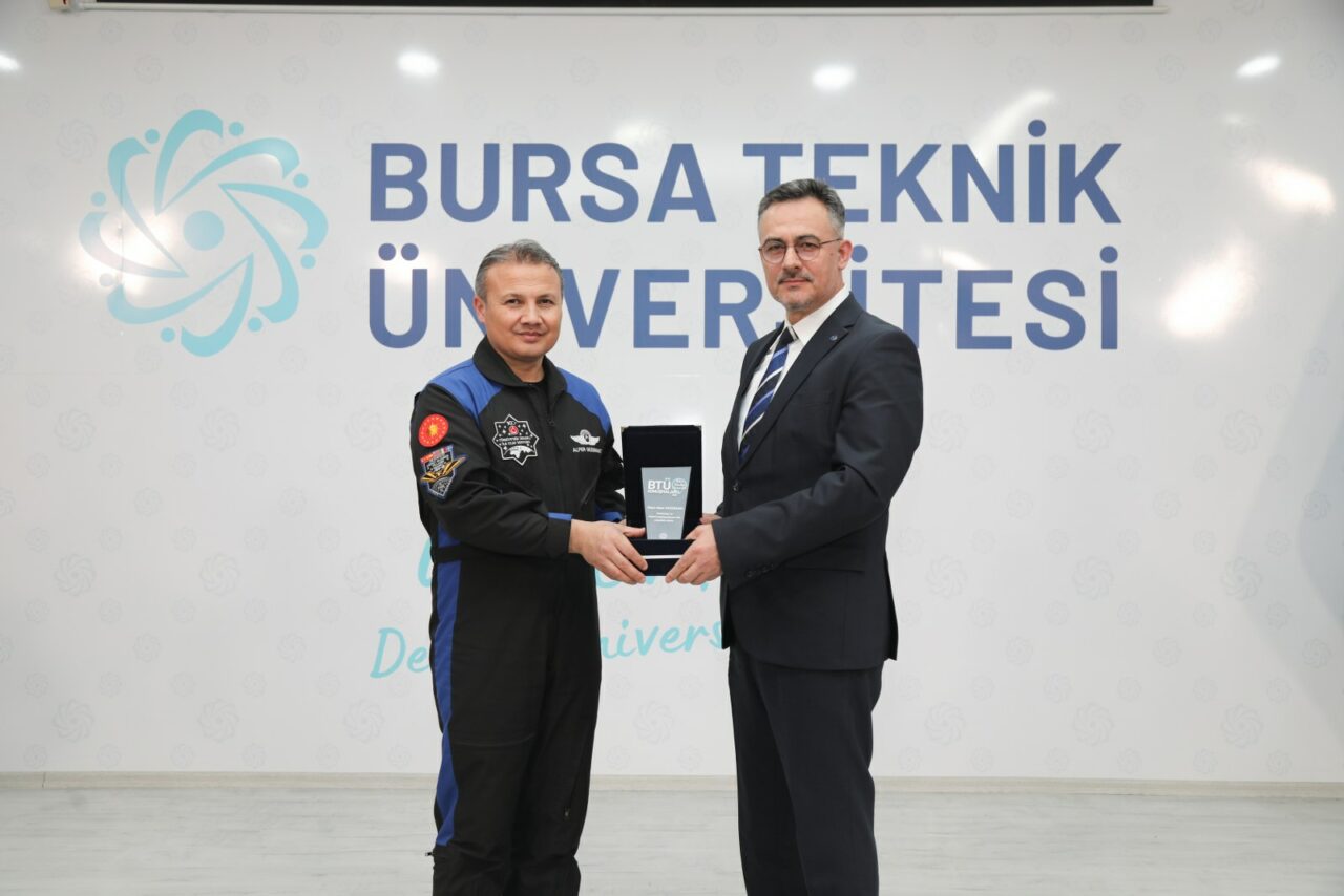Soru-cevap bölümüyle devam eden BTÜ Konuşmaları, BTÜ Rektörü Prof. Dr. Naci Çağlar’ın ilk Türk astronot Alper Gezeravcı’yaplaket takdiminin ardından toplu fotoğraf çekimiyle son buldu.