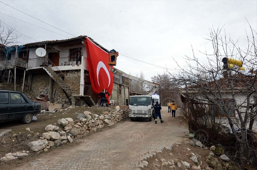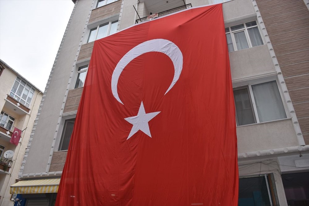 Saygılı ailesinin evine ve sokağına Türk bayrakları asıldı, sokağa taziye çadırı kuruldu.