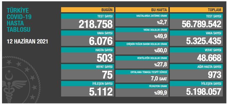 Sağlık Bakanlığı tarafından 12 Haziran 2021 koronavirüs tablosu paylaşıldı.