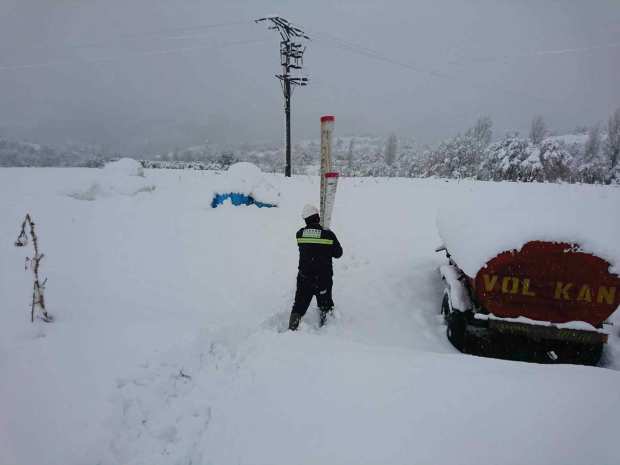 UEDAŞ, elektrik dağıtımının aksamaması ve vatandaşların mağduriyet yaşamamaları için merkez ve kırsal mahallelerde çalışmalarını tüm hızıyla sürdürüyor. Ekipler karla kaplı bölgelerde çok zor doğa koşullarında güçlükle ilerleyerek arızaları gidermeye çalışıyor.