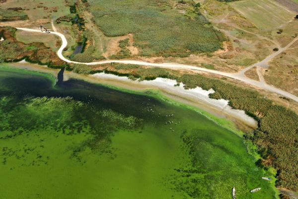 Doç. Dr. Nurhayat Dalkıran, “Uluabat Gölü’ndeki bu aşırı alg çoğalmaları yılın bu dönemlerinde doğal hale geldi. Bunun çeşitli faktörleri var. Göl, sığ ve verimli bir göl. Besin tuzu açısından beslenmiş bir göl. Bu da azot ve fosfor anlamından zenginleşmiş anlamına geliyor. Bu azot ve fosforun girdisinin sebepleri de var. Gölün sığ ve eski bir göl olmasına bağlı olarak doğal bir azot ve fosfor birikimi var. Bir de tarım ve insan faaliyetlerinden dolayı suya giren bir azot fosfor var. Özellikle son 40-50 yıldır aşırı şekilde azot ve fosforun girmesi özellikle bu dönemlerde alglerin aşırı çoğalmasına sebep oluyor. Her canlının besine ihtiyacı var. Ortamda ne kadar besin olursa buna bağlı olarak da canlılar ona göre artış gösteriyor” dedi.