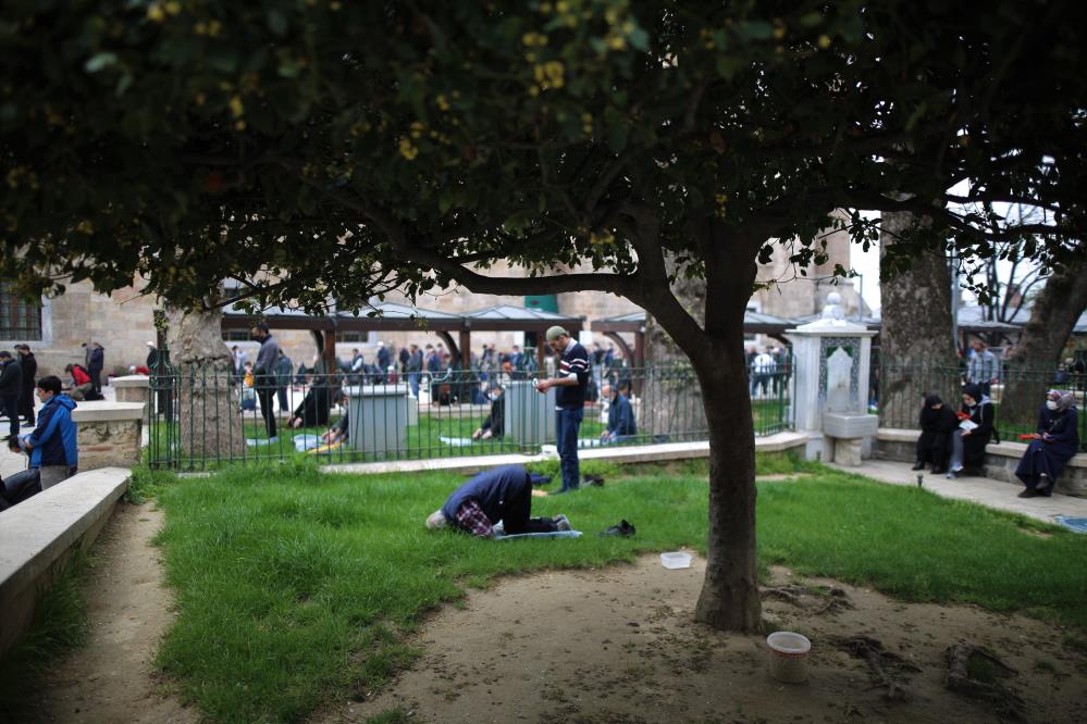 Caminin için dolduktan sonra içeriye kimse alınmazken, vatandaşlar cami avlusunda safları doldurdu. İHA