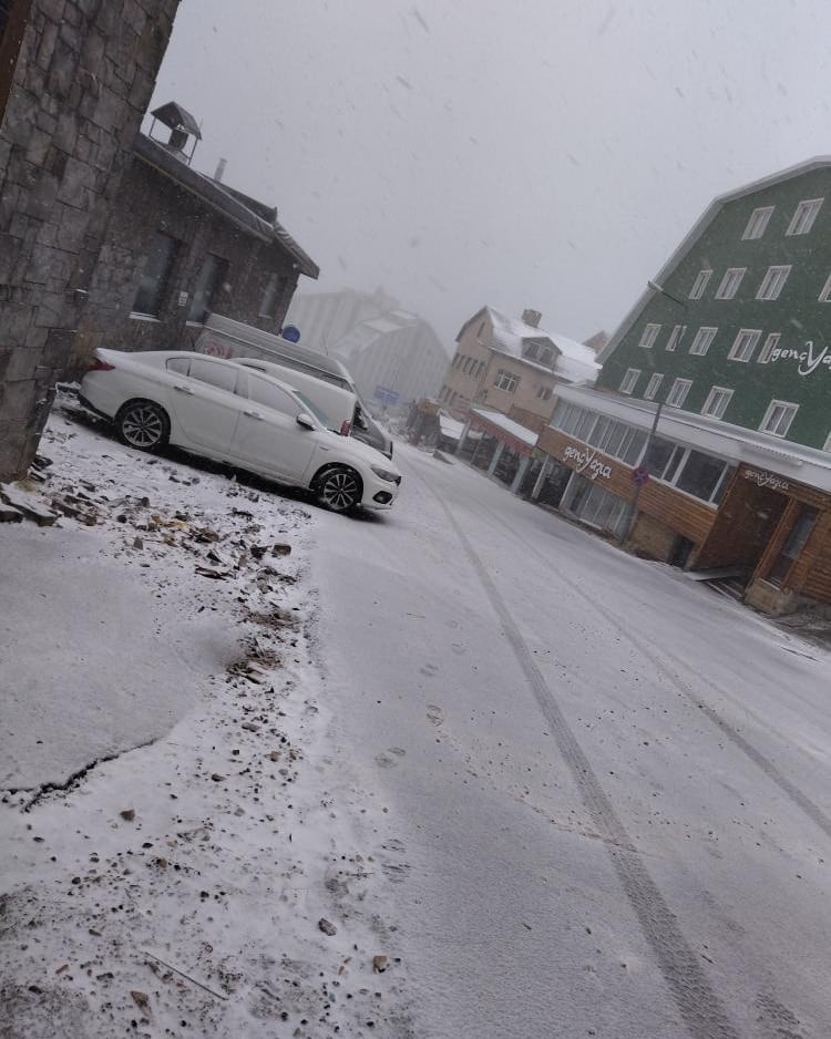 Kayak pistlerinin ve otel çatılarının beyaza büründüğünü gören işletmeciler telefonlarına sarılarak o anları kaydetti.