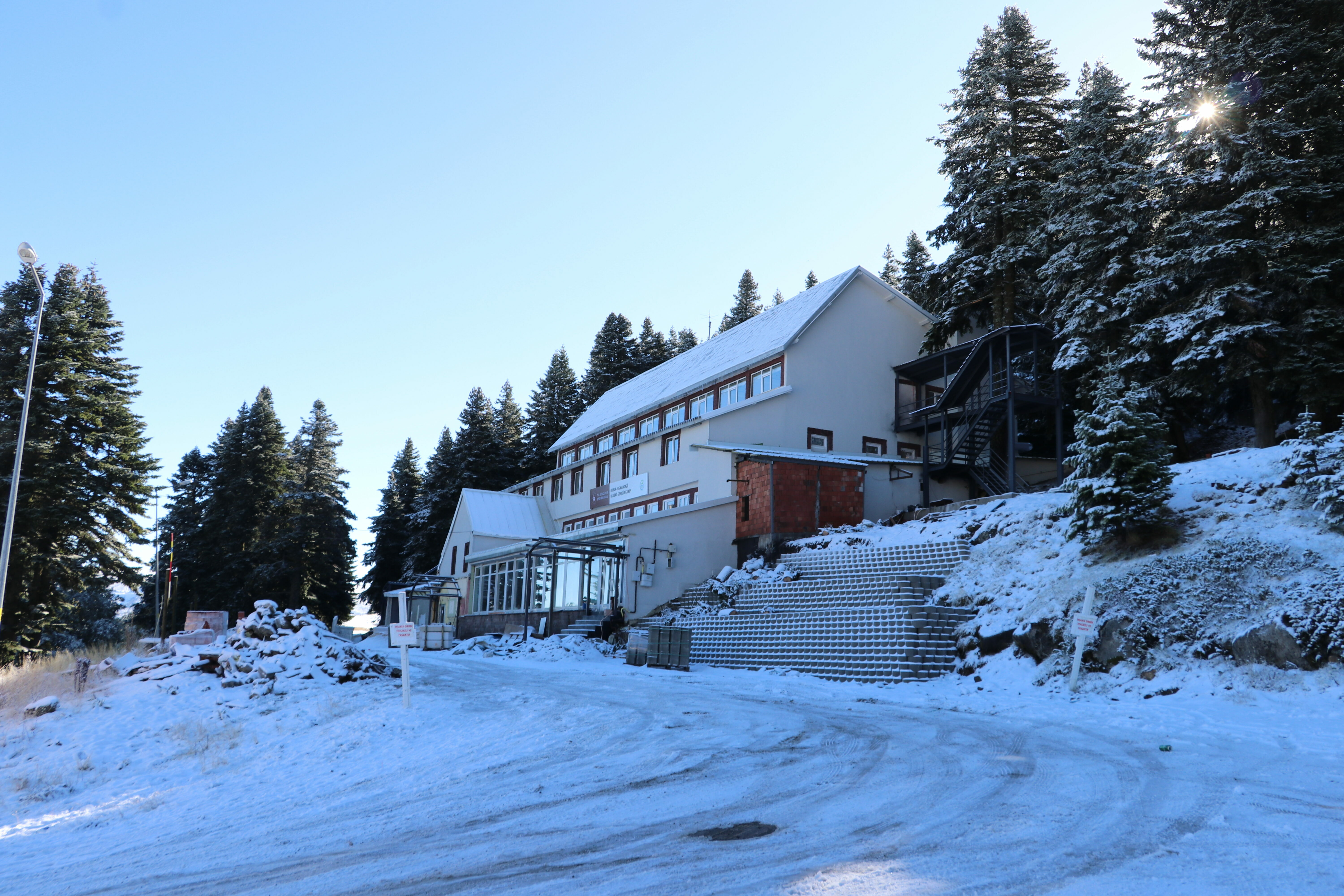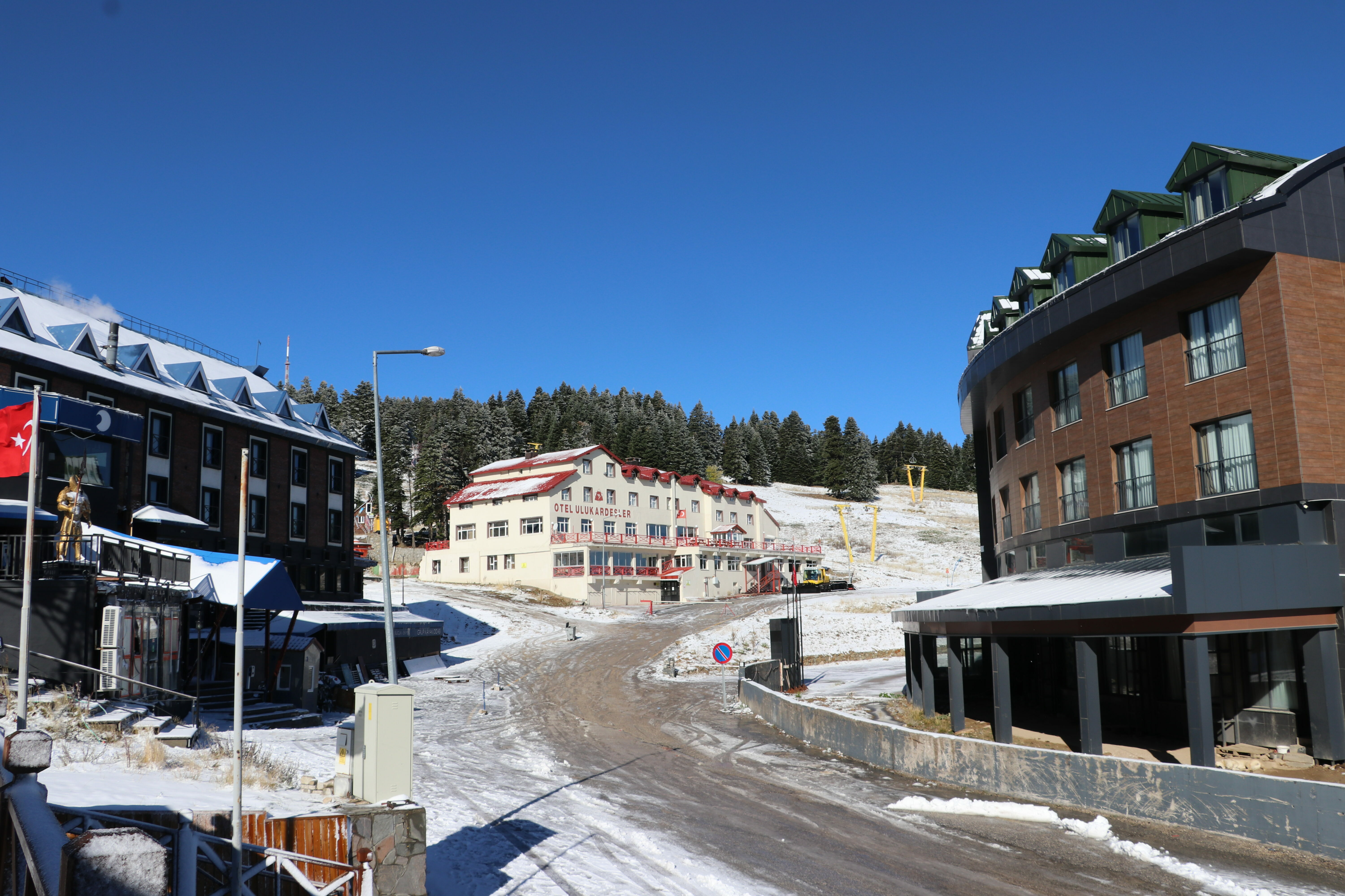 Uludağ’da gece saatlerinde başlayan kar, çok sayıda işletmenin yer aldığı Oteller Bölgesi’ni beyaza bürüdü.