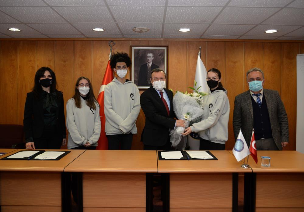 İmza töreninin ardından Şükrü Şankaya Anadolu Lisesi Onur Kurulu Başkanlığı görevini yürüten Fatma Yurdakul isimli öğrenci de Rektör Kılavuz’a verdiği destekten dolayı çiçek takdim etti. Törende BUÜ Eğitim Fakültesi Dekanı Prof. Dr. Salih Çepni, okul yöneticileri, akademisyen ve öğrenciler de hazır bulundu.