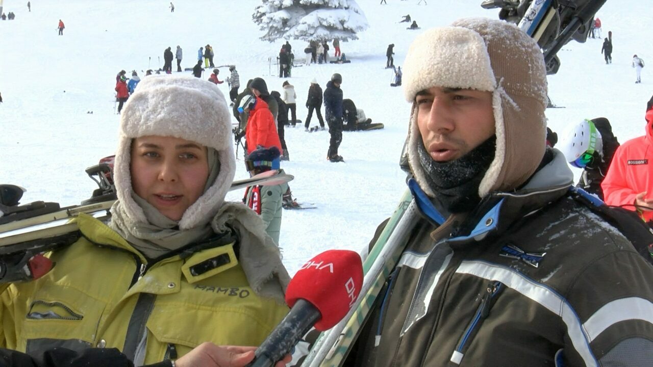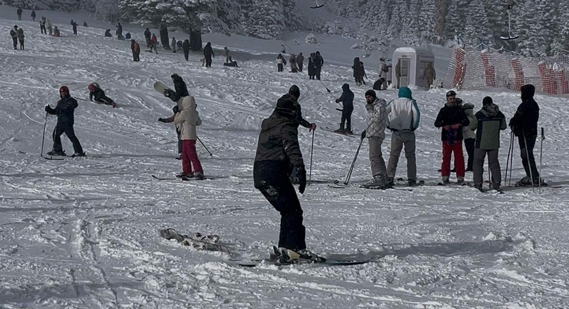 Kar kalınlığının 57 santimetre olarak ölçüldüğü Uludağ’daki kayak pistleri hem konaklayan hem de günübirlik tatilcilerle doldu.