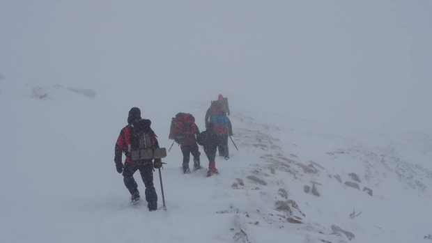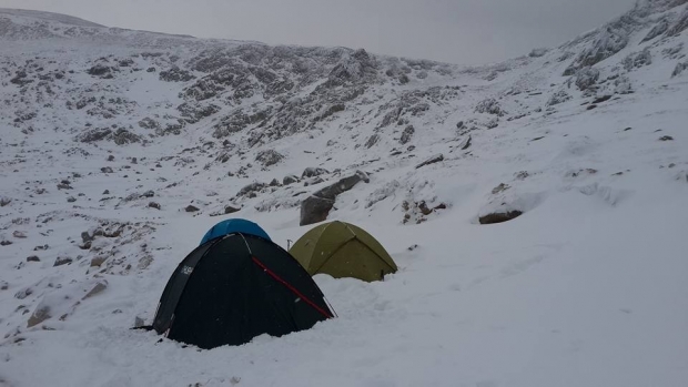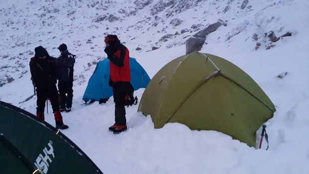 -20 dereceyi bulan soğukta çadır ve uyku tulumları içinde geceyi geçiren ekip, sabah erken saatlerinde büyük zirveye tırmanmak için yola çıktı. 4 saatlik yürüyüşün ardından saatte 70 kilometre esen fırtınaya yakalanan dağcılar, kamp alanına dönmeye karar vererek yürüyüşü sonlandırdı.