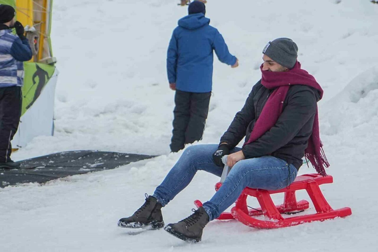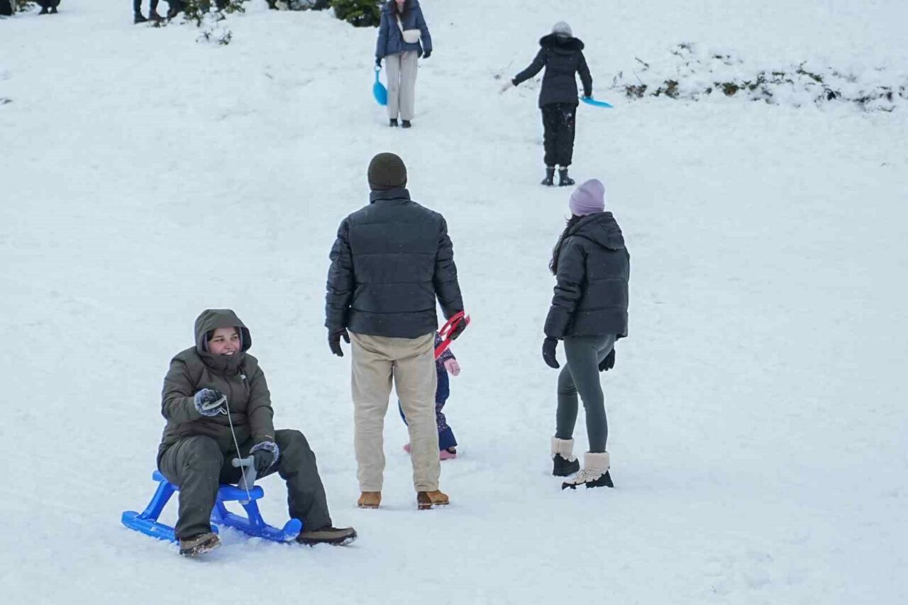 Kayak, snowboard ve telesiyej fiyatlarını yüksek bulan vatandaşlar, kendi getirdikleri poşet ve kızakla kaydı.