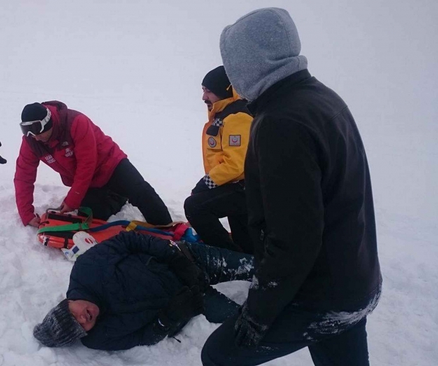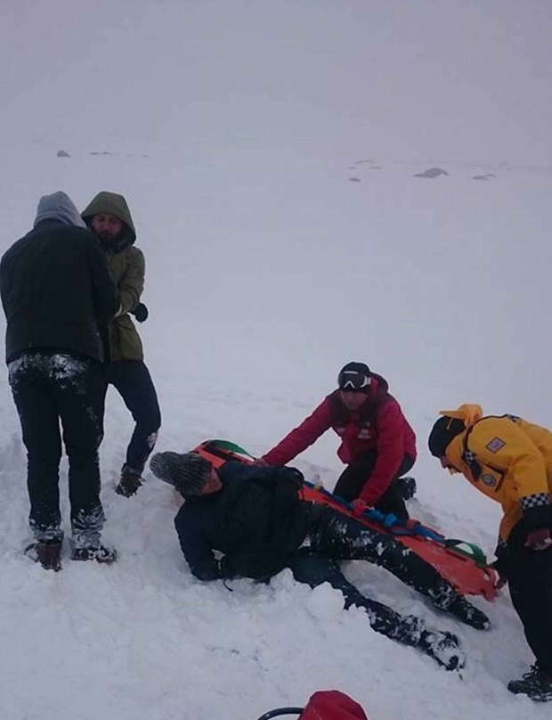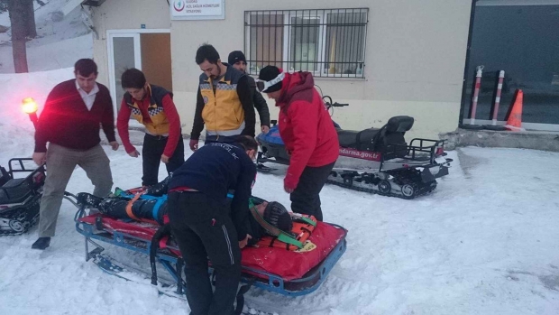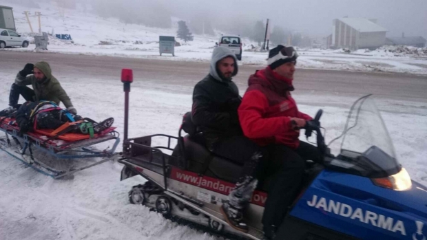 Hava sıcaklığının sıfırın altında 2 dereceye düştüğü Uludağ’da donmak üzere bulunan Tunuslu turist sedyeye konduktan sonra kar motoru ile Oteller Bölgesi’ne götürüldü.