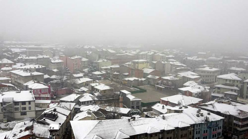 Kent merkezinde sadece çatı ve araçların üzeri karla kaplanırken, Uludağ’da kar kalınlığı yarım metreyi geçti.