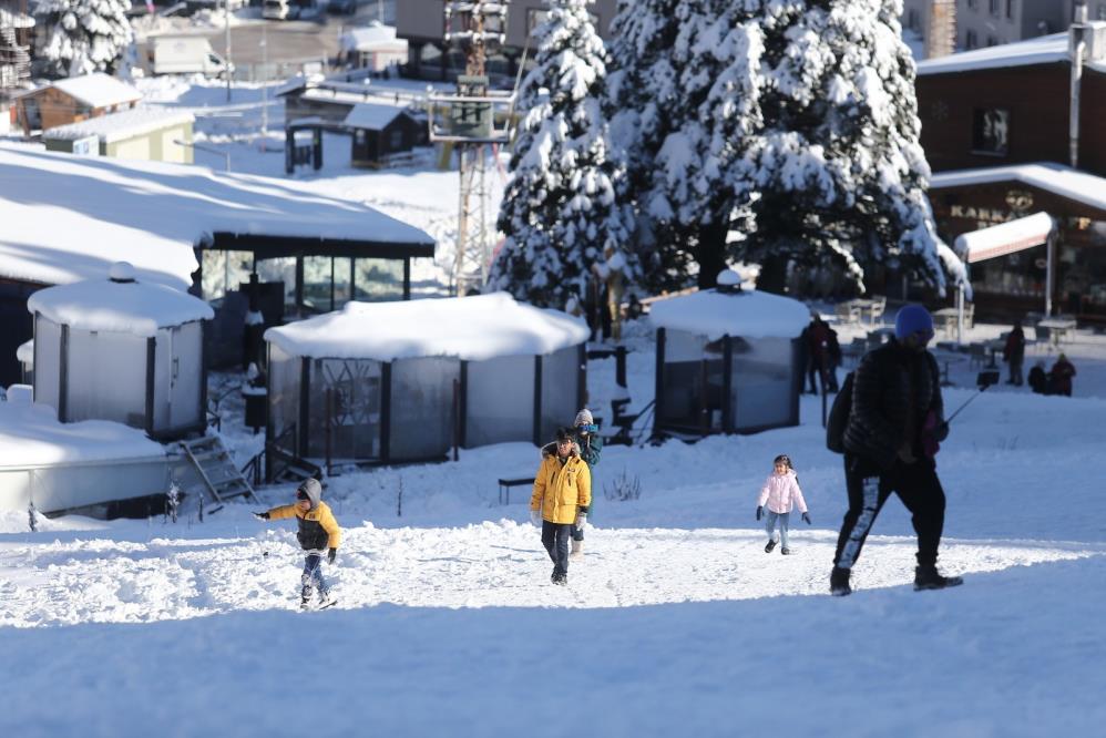 Bol bol fotoğraf çekilen turistler, kızaklarıyla çocuklarını da kaydırarak eğlenmeyi ihmâl etmedi. Hava sıcaklığının eksi dereceleri gördüğü zirvenin kar yağışının artmasıyla birlikte daha da hareketlenmesi bekleniyor.