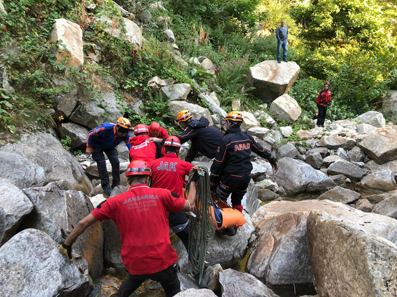Yanında bulunan arkadaşları ise hemen Jandarma Arama Kurtarma (JAK) ekiplerine ihbarda bulundu. İhbar üzerine, JAK, AFAD ve UMKE’den oluşan 12 kişilik arama kurtarma ekibi oluşturularak 1’i yaralı 3 kişini mahsur kaldığı bölgeye doğru hareket edildi.