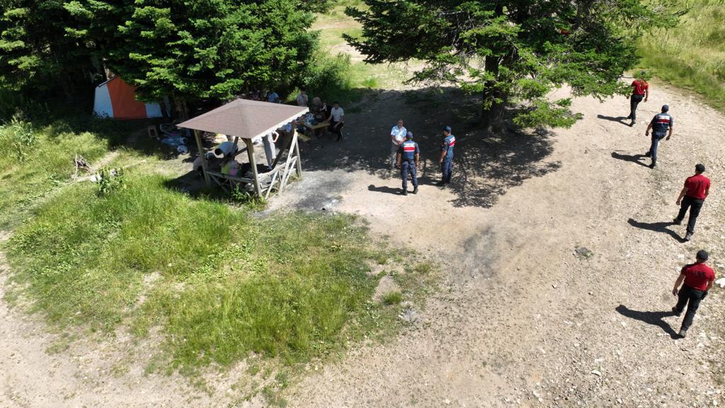 Uludağ’da piknik yapan vatandaşlar uyarılırken, ormanların içi ve çevresinde olası yangınlara karşı drone ile bölge inceleniyor.