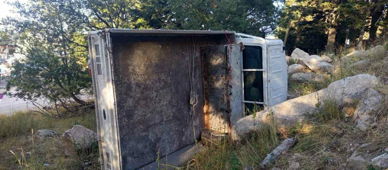Bursa’da virajı alamayan sürücü kontrolü kaybedip kamyoneti devirdi.