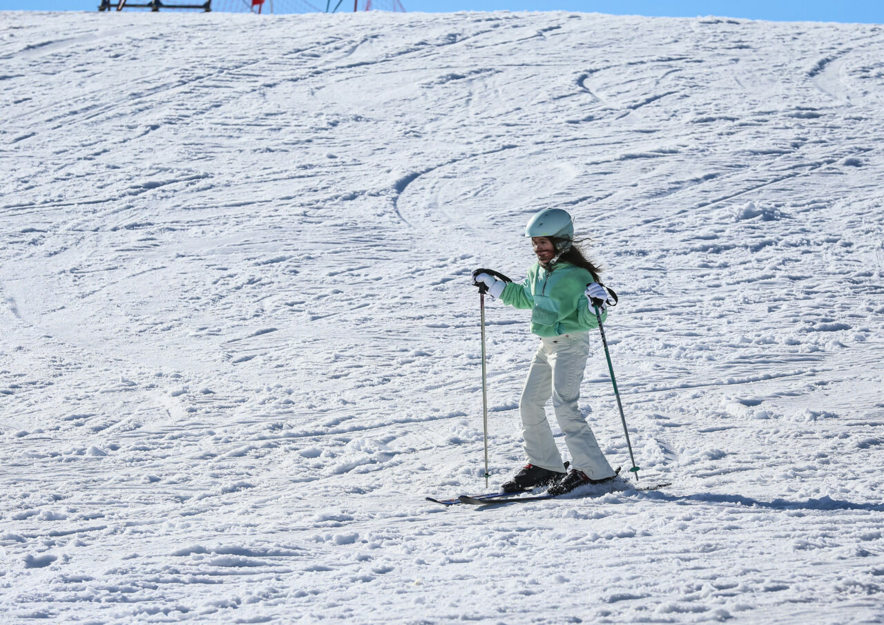 Oteller Bölgesi’nde kar kalınlığı 65 santimetre ölçülürken, günübirlikçiler ve otellerde konaklayan turistler, kayak ve snowboard yapma imkanı buluyor.