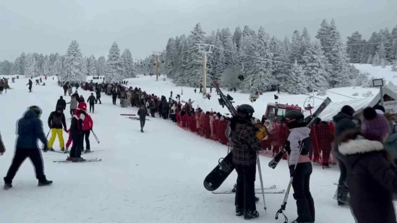 Hafta sonu tatilini Uludağ’da değerlendirmek isteyen vatandaşlar yoğunluk oluştururken, zirveye çıkmak için telesiyej sırası ise kameraya yansıdı.