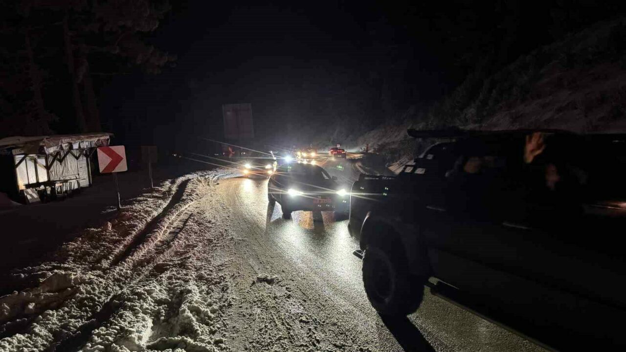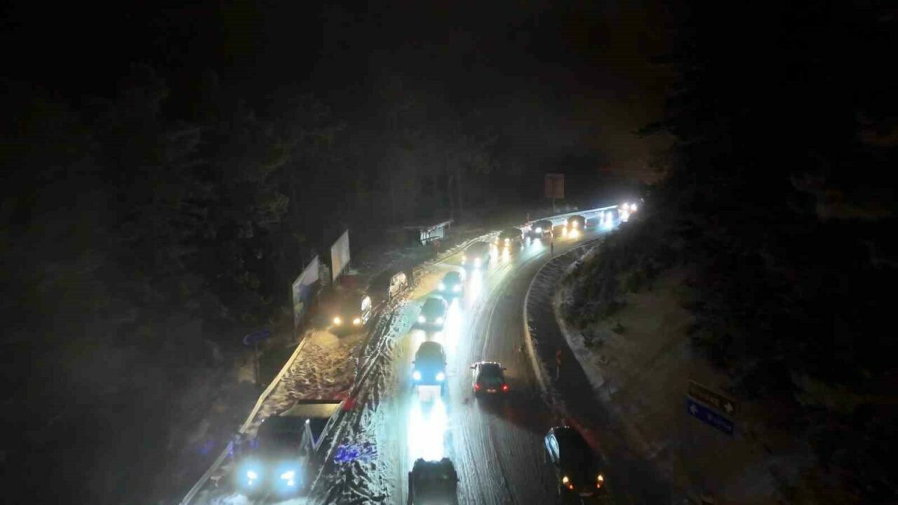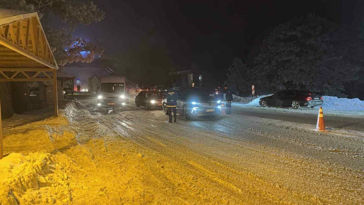 Kış lastiği bulunmayan araçların geçişine izin verilmezken, Bakacak Seyir Terası ile Orman Köşkleri bölgesine araç girişleri tedbir amaçlı olarak kapatıldı.