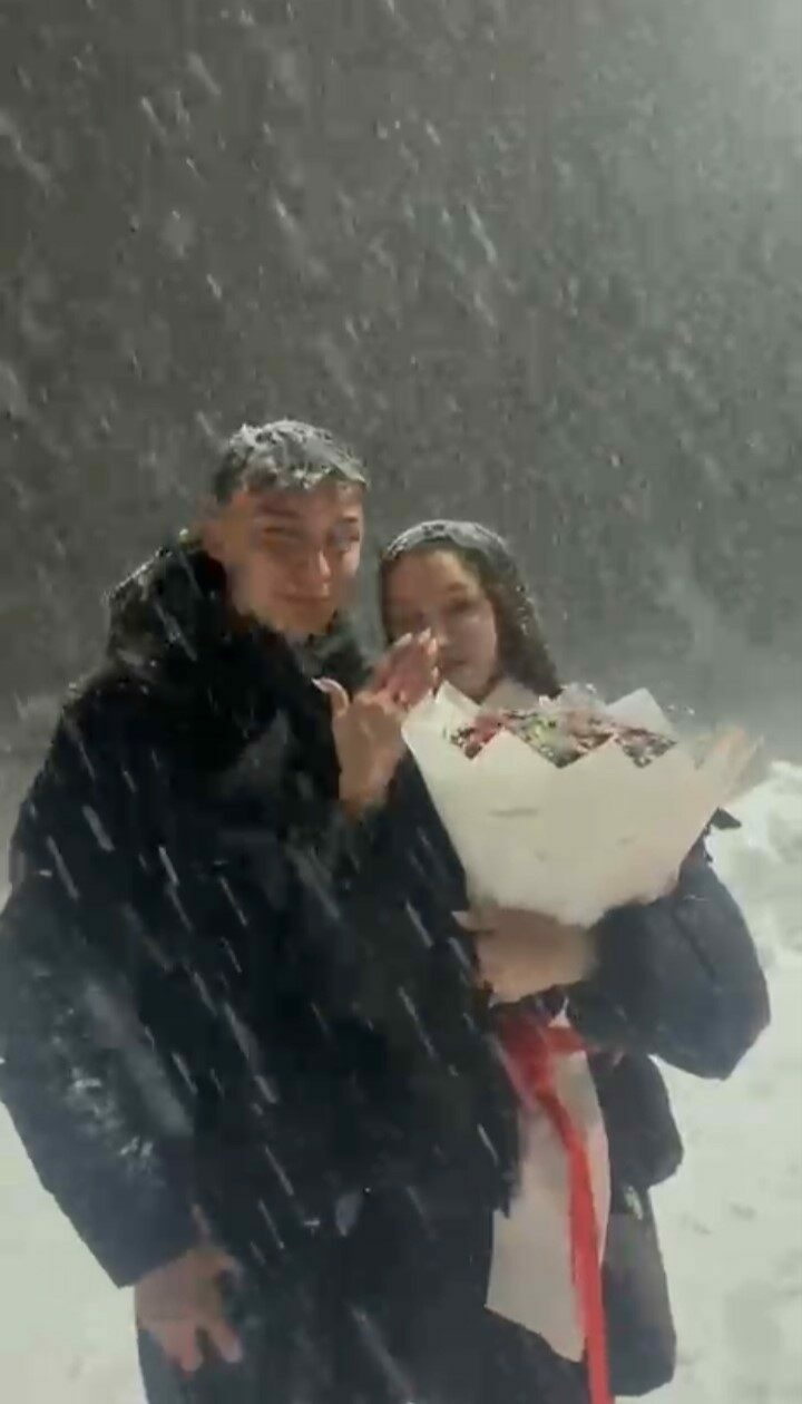 Zirvenin dondurucu soğuğuna rağmen sevginin sıcaklığının hissedildiği gecede Halil Şirinbaş diz çökerek Züleyha Eratıcı’ya evlilik teklif etti. Büyük şaşkınlık ve mutluluk yaşayan Eratıcı’nın “Evet” cevabı, çevredeki tatilcilerin alkışlarıyla karşılık buldu. Böylece Halil Şirinbaş ve Züleyha Eratıcı çifti, 2026 yılının ilk evlilik teklifi olarak hafızalara kazındı.