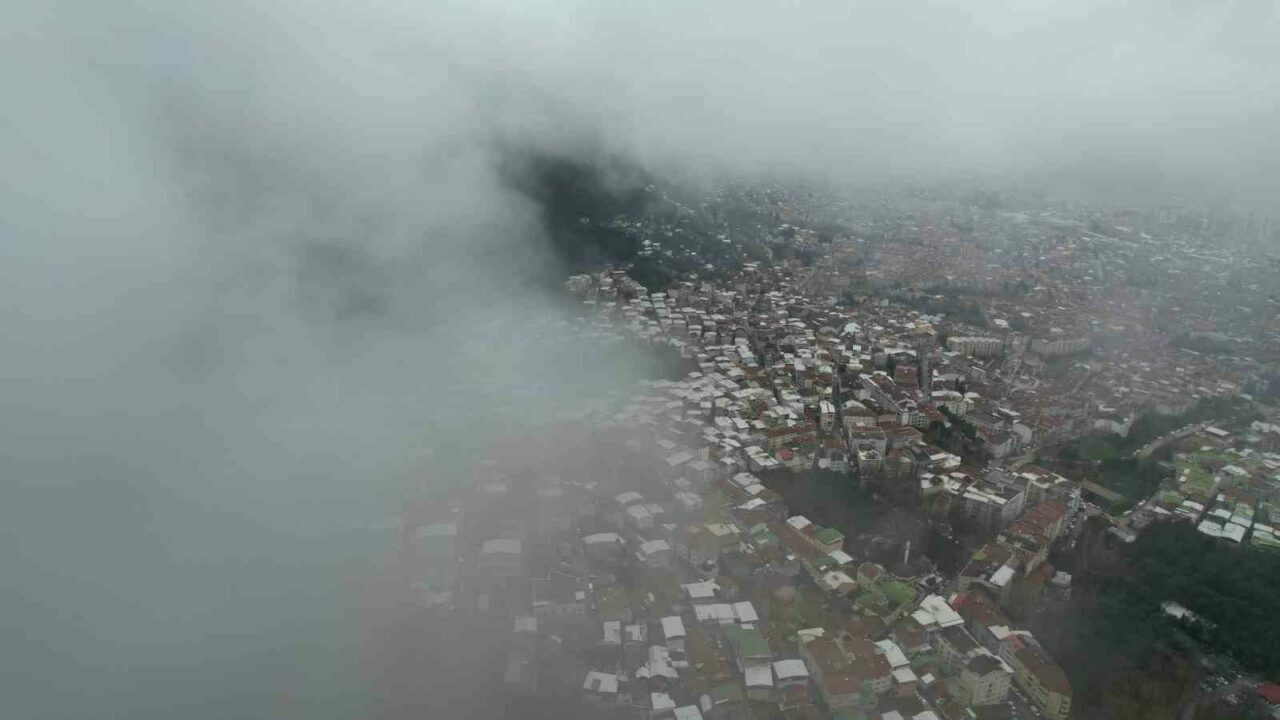 Özellikle Uludağ yamaçlarından şehir merkezine doğru ilerleyen sis bulutları, kenti adeta beyaz bir örtüyle kapladı.