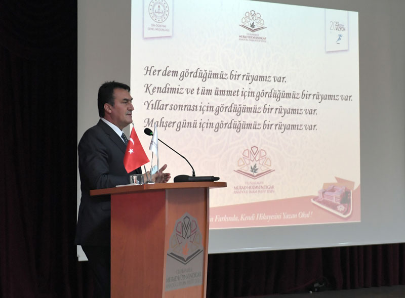 Uluslararası Murad Hüdavendigâr Anadolu İmam Hatip Lisesi’nin konferans salonunda gerçekleşen veda programında yabancı öğrenciler, adeta kendi evlerinden ayrılmanın hüznünü yaşadıklarını belirtti. Bir öğrencinin Kur’an-ı Kerim tilavetiyle başlayan programda konuşan Osmangazi Belediye Başkanı Mustafa Dündar, Türkiye’nin örnek okulunda yetişen öğrencilerin dünya barışına katkı sağlayacağına dikkat çekti. Okulun ilk mezunlarını vermenin gururunu yaşadıklarını ifade eden Dündar, “Bu okulla ilgili düşüncenin ortaya çıkması, proje ve inşaat aşamaları dün gibiydi. İlk adımı sizlerle attık. Elhamdülillah, ilk mezunlarımızı verdik ve okulumuz da rüştünü ispatladı. Hepiniz başarılı sonuçlarla mezun oldunuz. Herkes bir üniversiteyi kazandı” dedi.