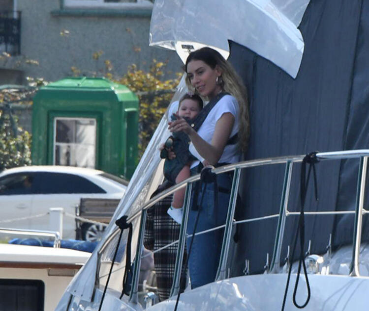 Bir ara minik kızını alıp teknenin güvertesine çıkan Sinem Kobal, Lalin’e hem martıları hem de denizi seyrettirmişti. Annesinin kucağında tüm sevimliliğiyle etrafı seyreden Lalin bebek, güzel oyuncunun adeta kopyası gibiydi.