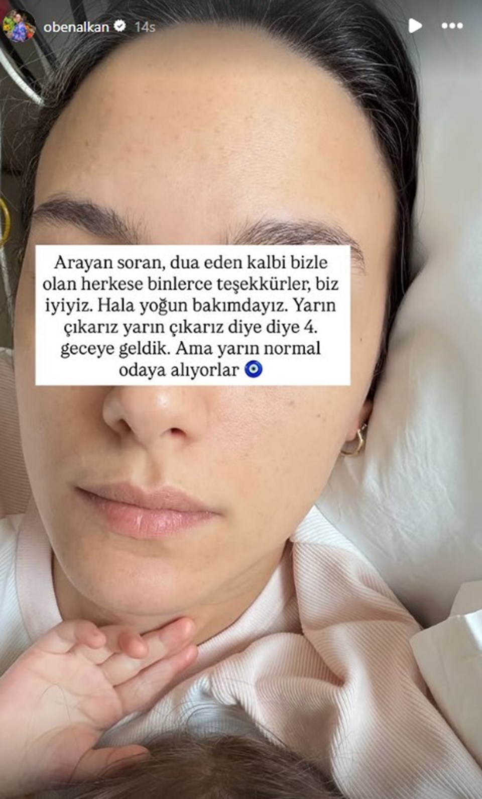 Konuya ilişkin sosyal medyadan açıklama yapan Oben Alkan, “Arayan, soran, dua eden, kalbi bizimle olan herkese binlerce teşekkürler. Biz iyiyiz. Hâlâ yoğun bakımdayız. ‘Yarın çıkar’ diye diye dördüncü geceye geldik ama yarın normal odaya alıyorlar” ifadelerini kullandı.