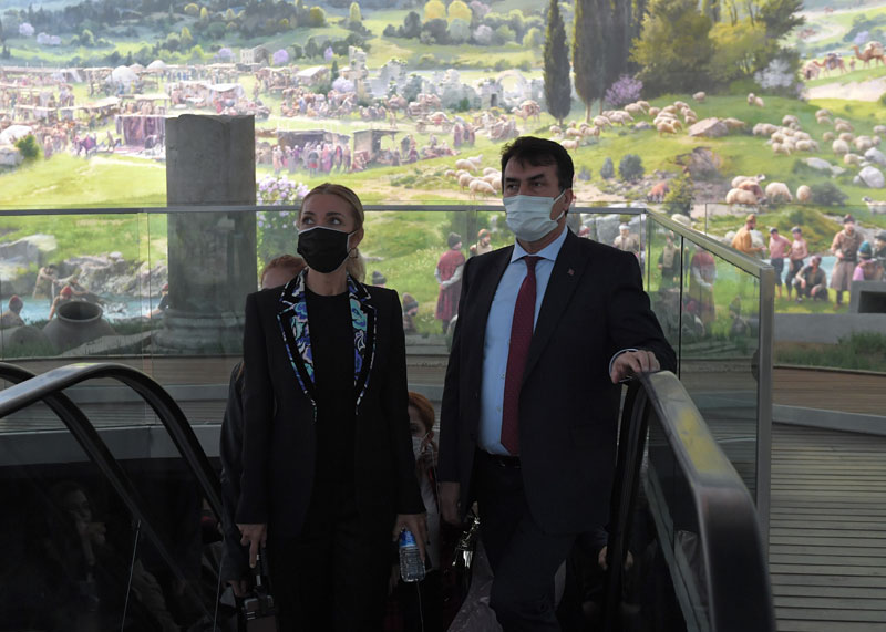 Osmangazi Belediye Başkanı Mustafa Dündar, “Her Şehri Ünlülerle Geziyoruz” projesi kapsamında Bursa’ya gelen iş insanı ve sanatçılardan oluşan Rotahane ekibini Panorama 1326 Bursa Fetih Müzesi’nde ağırladı. Kültür ve Turizm Bakanı Mehmet Nuri Ersoy’un eşi Pervin Ersoy öncülüğünde müzeyi ziyaret eden ekibe bilgiler veren Başkan Dündar, “Yeşil bina konseptiyle tasarlanan müzemiz, iç içe geçmiş iki binadan oluşuyor. 42 metre açıklığındaki kubbeyi oturtmuş olduğumuz 6 tane direk Bursa’da metfun 6 padişahımızı simgeliyor. Dünyadaki diğer panoramik müzelerde bir savaş sahnesini anlatılırken, Panorama 1326’da Osmanlı’nın tüm dünyada barış ve huzuru hakim kılma felsefesi anlatılıyor” dedi.