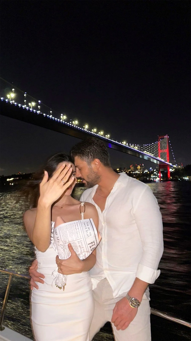 Ali Öner ve müstakbel eşinin Boğaz Köprüsü manzarasıyla beyazlar içinde verdiği poz büyük ilgi gördü.