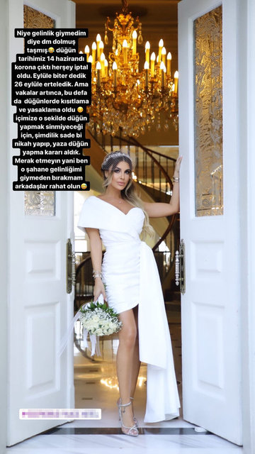 ‘Niye gelinlik giymedin?’ diye DM (özel mesaj) dolmuş, taşmış. Düğün tarihimiz 14 Haziran’dı. Koronavirüs çıktı, her şey iptal oldu. ‘Eylülde biter’ dedik, 26 Eylül’e erteledik ama vakalar artınca bu defa da düğünlerde kısıtlama ve yasaklama oldu.