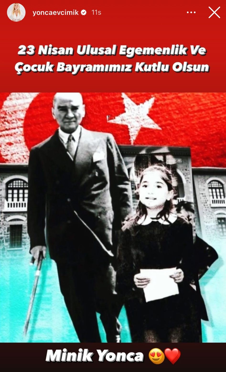 Yurdun her bir yanı etkinliklerle şenlenirken, ünlü isimler bu anlamlı günde yaptığı paylaşımlarla sosyal medyayı renklendirdiler. Derya Uluğ’un çocukluk fotoğrafıyla kutladığı görsele beğeni yağarken Yonca Evcimik’in Ulu Önder Mustafa Kemal Atatürk ile bir araya getirdiği çocukluk fotoğrafı duygulandırdı. Bengü’nün kızını paylaştığı fotoğraf yoğun ilgi gördü.