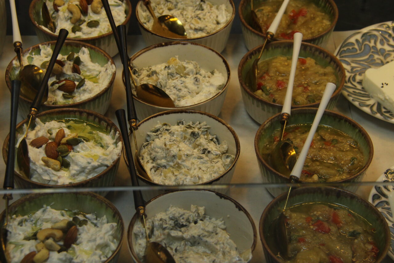 Ana yemeklerin yanı sıra, patlıcan salatası, kavrulmuş cevizli ıspanak, semizotu ve acılı ezme gibi yan lezzetler, sofrayı zenginleştiren tamamlayıcılar. Özellikle kendi yöntemleriyle hazırladıkları maydanoz sapıyla yapılan sos, misafirlerin beğenisini kazanıyor. Ayrıca Kıbrıs’tan özel olarak getirilen Hellim peynirleri kızartıralak servis ediliyor ve farklı bir deneyim de sunuyor. Tatlı severler için ise kestane şuruplu kabak tatlısı şu zamana kadar yediğimin en iyisiydi. Ve yer fıstıklı süt helvası da mutlaka denenmesi gereken lezzetler arasında.