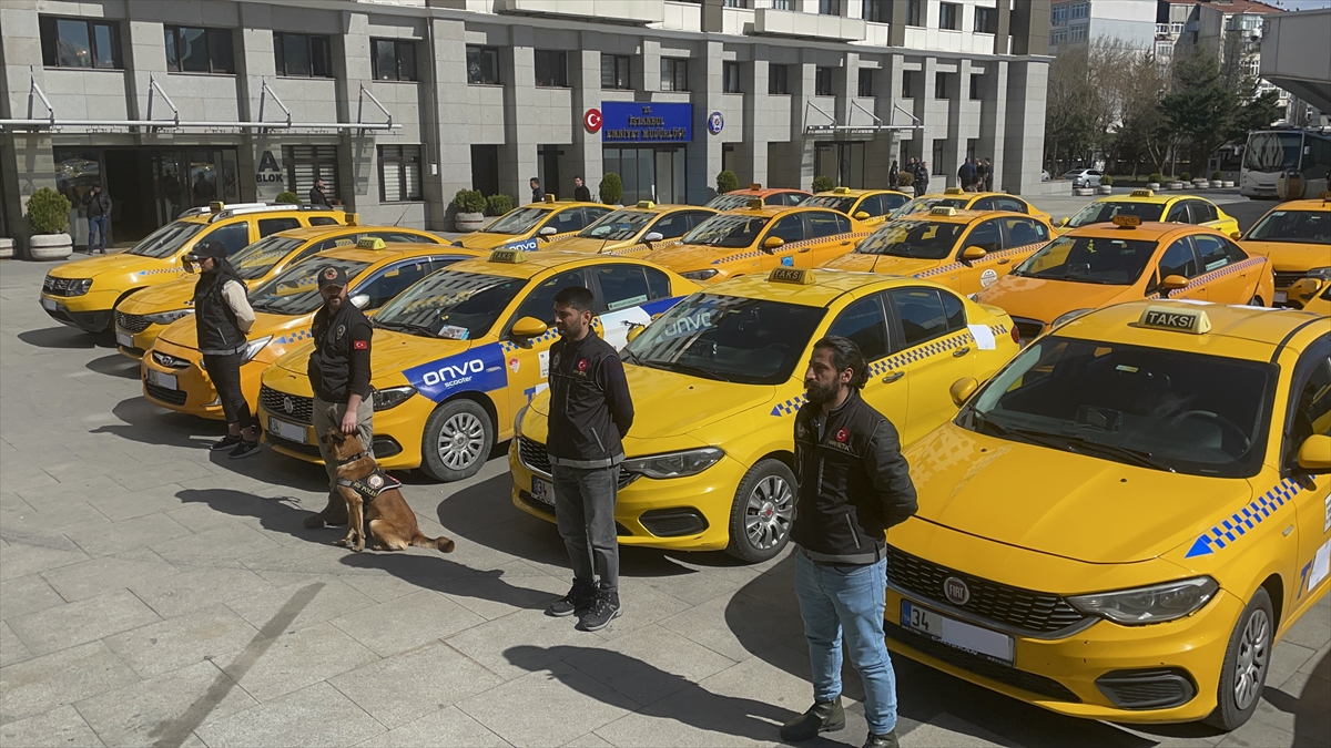 El konulan taksilerin bir kısmı, İstanbul Emniyet Müdürlüğünün bahçesinde sergilendi.
