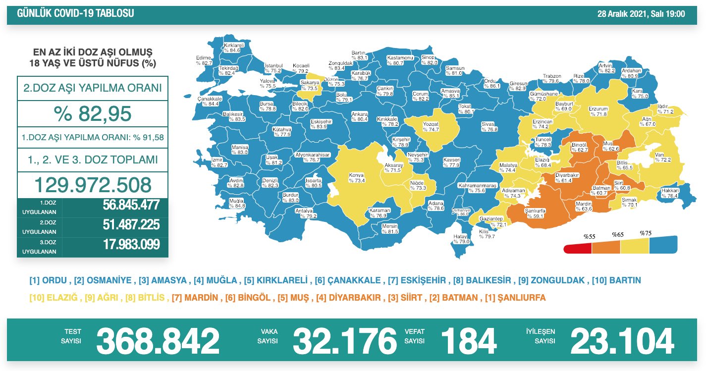 Türkiye’nin 28 Aralık 2021 günlük corona virüs tablosu açıklandı.
