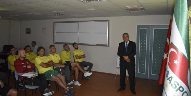 Bursaspor Vakıfköy Orhan Özselek Tesislerinde dün antrenör ve oyunculara yeni sezon oyun kurallarıyla ilgili eğitim verildi.