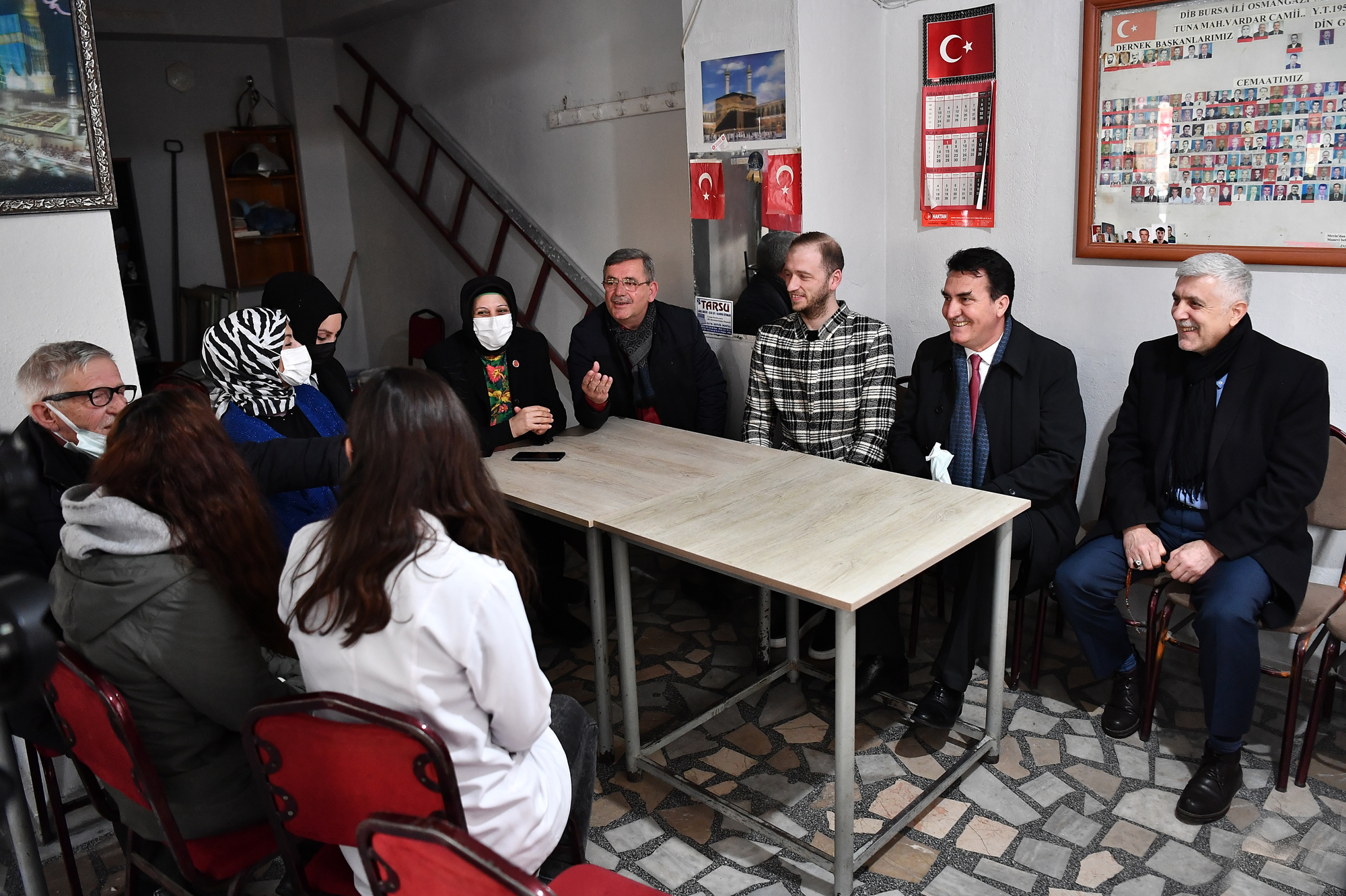 Her hafta Cuma namazını farklı bir mahallede kılıp vatandaşlarla bir araya gelerek talep ve istekleri dinleyen Osmangazi Belediye Başkanı Mustafa Dündar’ın bu haftaki adresi Tuna Mahallesi oldu. Mahalle sakinleri ile çay içip sohbet eden Başkan Dündar, Vardar Camii’nde yapılan çalışmaları Osmangazi İlçe Müftüsü Mehmet Uzun, Tuna Mahalle Muhtarı Ayşegül Yıldız ve vatandaşlarla birlikte inceledi.