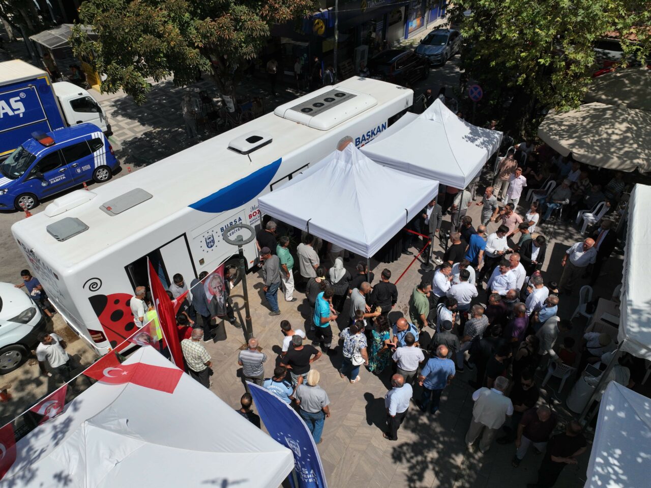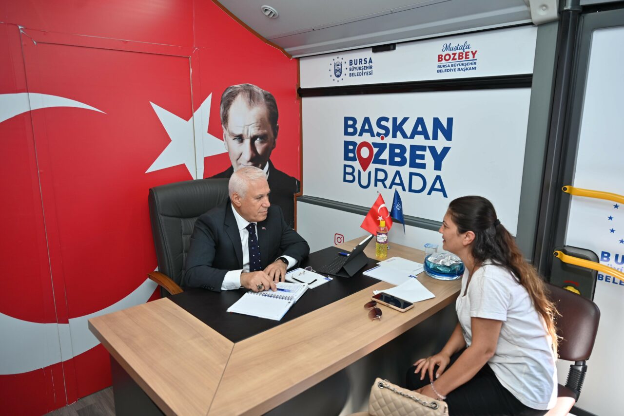 Cuma namazının ardından vatandaşlara aşure ikramında bulunan Başkan Bozbey, daha sonra makamı haline getirilen otobüste Yenişehirlileri ağırladı. Görüşmelerde Başkan Bozbey’e vatandaşların ihtiyaçlarına göre Büyükşehir Belediyesi bürokratları eşlik etti.