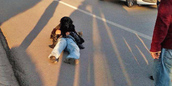 Caddenin ortasına yere düşen Kadim Halis’in yanında bulunan ‘Dost’ adlı 5 yaşındaki köpeği ise hemen adamın üstüne kapandı.