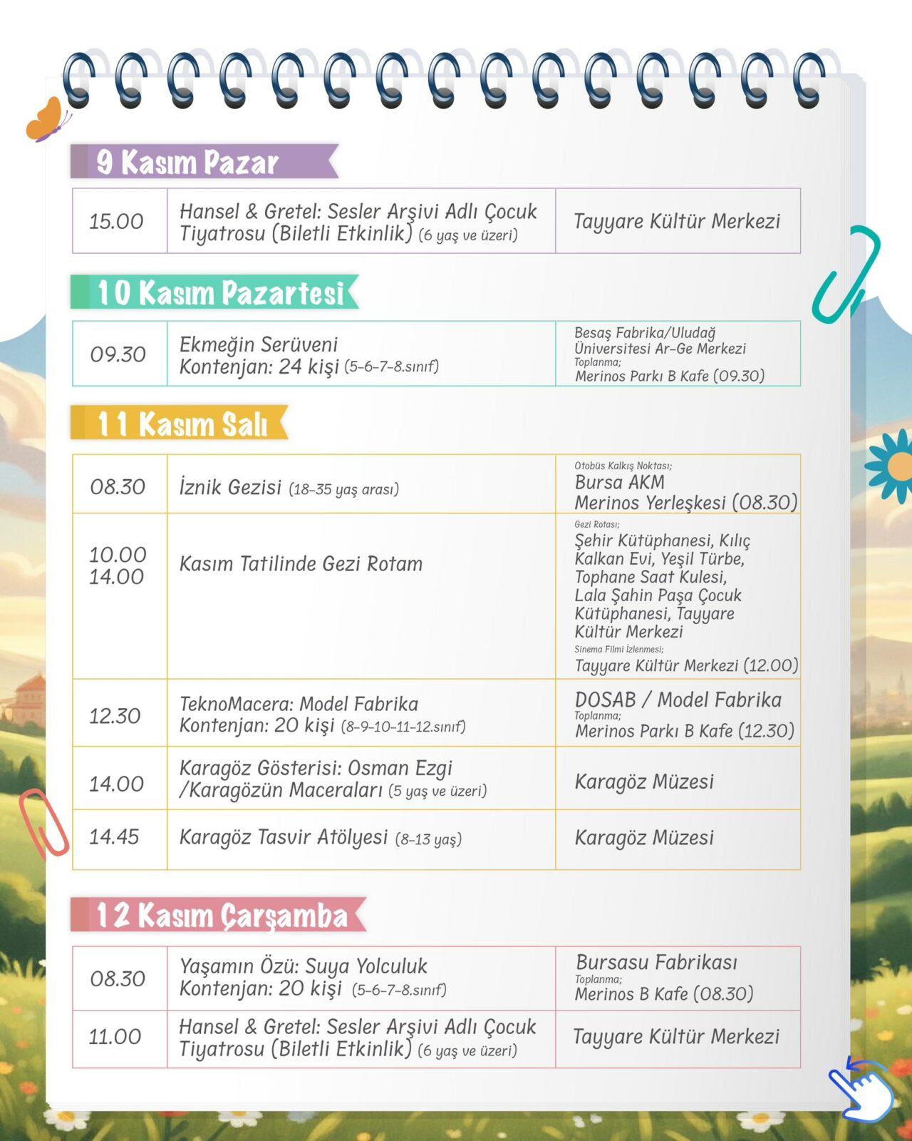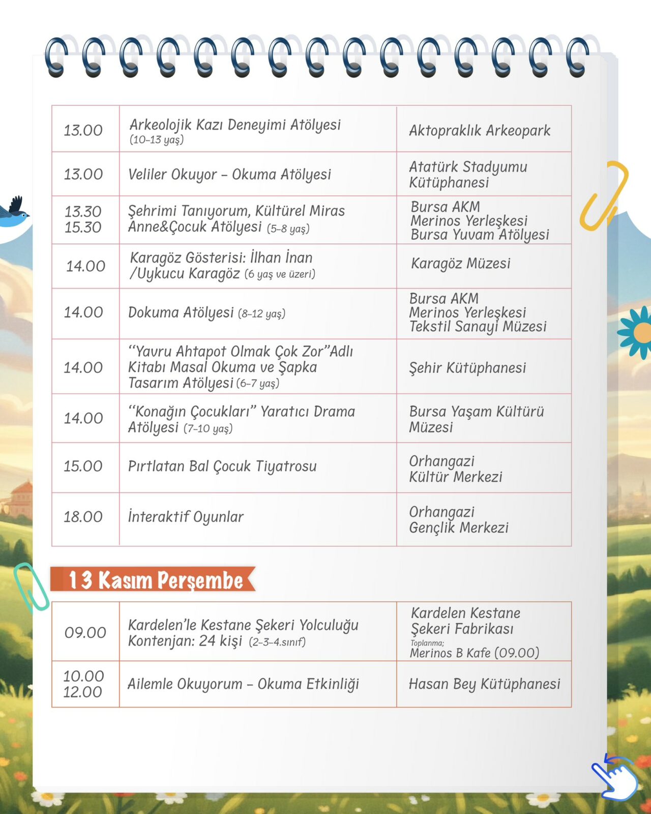 Bursa Büyükşehir Belediyesi, Bursalı miniklerin tatil sürecinde keyifle öğrenmesi, yeni deneyimler kazanması ve sosyal aktivitelerle buluşması amacıyla kentin dört bir yanında ücretsiz ve erişilebilir etkinlikler sunuyor. Çocuk dostu programlarda kültür-sanat odaklı etkinliklerin yanı sıra bilim ve tarih temalı etkinlikler de yer alıyor.