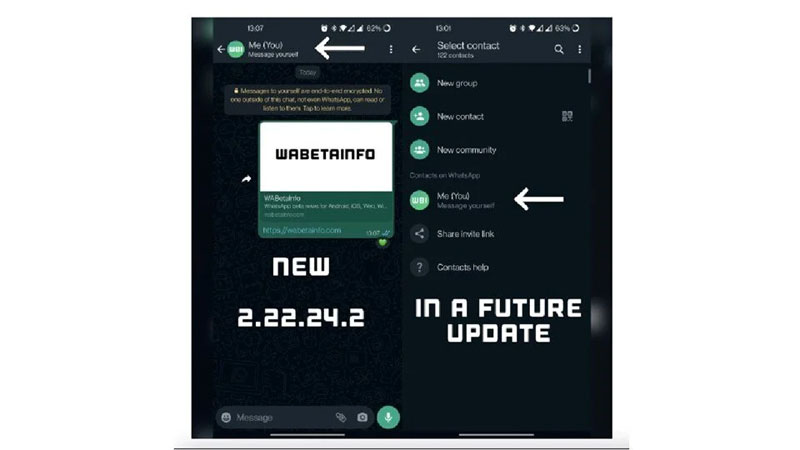 WABetaInfo’nun tespit ettiği yeni bir geliştirmeye göre WhatsApp kişilerin kendilerine mesaj atmasına izin verecek.
