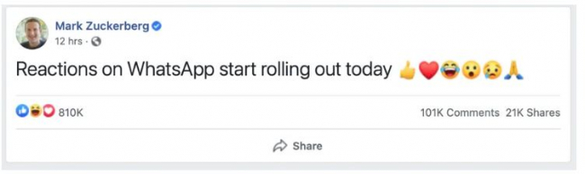 Dünyanın en popüler mesajlaşma uygulaması olan WhatsApp, bir mesaja emoji ile tepki vermenin yanı sıra 2 GB’a kadar olan dosyaları paylaşma özelliğini duyurdu.