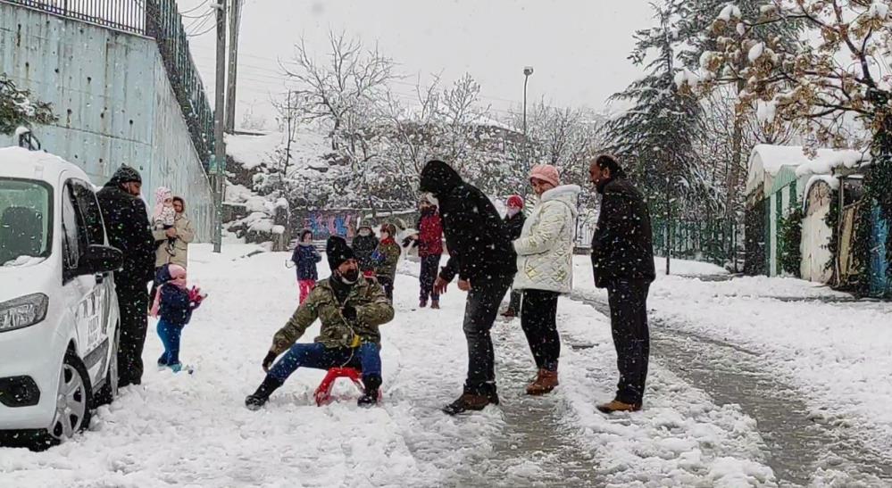 Koronavirüs önlemleri kapsamında sokağa çıkma kısıtlaması olmasına rağmen kar sevinci tüm yasakları unutturdu.