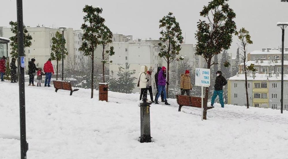 Evlerinin önünü, yolları ve parkları beyaz örtü ile gören vatandaşlar kendilerini sokağa attı.