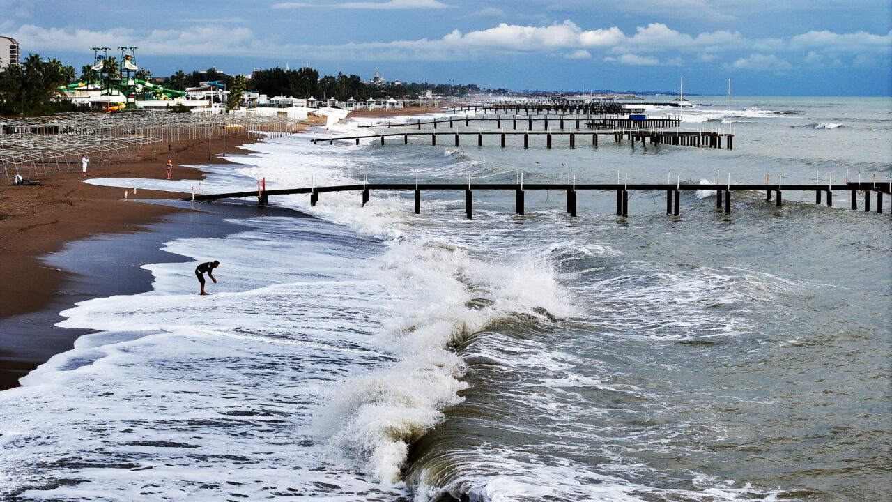Muratpaşa ilçesinin kıyı bölgesinde, yağışın ardından güneşin açmasıyla gökyüzünde siyahın ve beyazın tonlarının hakim olduğu bulutlar oluştu.