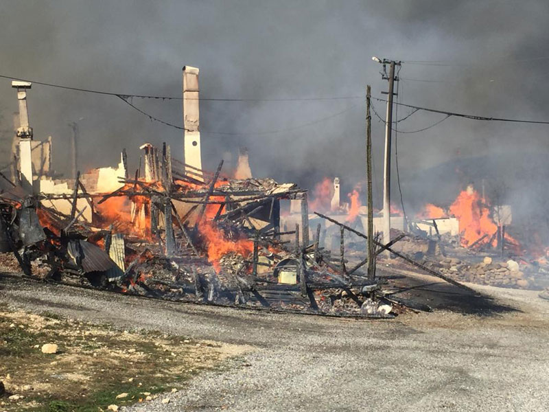 Alınan bilgiye göre bazı büyük ve küçükbaş hayvanın kayıp olduğunu aktaran Ümit, “Tesellimiz; can kaybımız yok. Şu anda yangın kontrol altına alınmak üzere. Genel olarak mücadelemiz iyi gidiyor. Gelen bilgiye göre, 12 ev yandı.” diye konuştu.